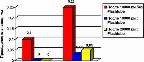 Эффективность использования присадки «Flashlube» была проверена экспериментальными исследованиями на фирме AG Autogas Systems. На двигателе B203BB3, автомобиля Хонда Cr-V, оборудованного пропан/бутановой газовой системой, была установлена врезка во впускном коллекторе для ввода жидкости, между вторым и третьим цилиндром. Контроль проседания клапанов выполнялся через 10 тыс.км пробега автомобиля.