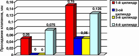 Рис. 5. Результаты исследования износа клапанов на двигателе B203BB3, автомобиля Хонда Cr-V, при работе на пропан/бутане. Подача жидкости между вторым и третьим цилиндром.