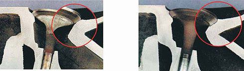 Выпускные клапаны, по сравнению со впускными, больше подвергаются воздействию температуры. При номинальной нагрузке, седла впускных и выпускных клапанов работают при температурах около 300º и 350º. Тогда как тарелки клапанов и нагреваются до 850ºС даже при работе двигателя на бензине. Поэтому, как на бензине, так и на газу, обычно страдают выпускные клапаны.