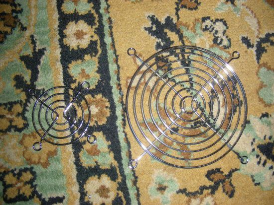 сие чудо в руках, сразу вспомнились колечки на приборку. замерив самое верхнее кольцо, пришел к выводу что для задумки оно подойдет как нельзя лучше... итак: понадобиться -бокорезы и надфиль по металлу, 1 тюбик суперклея (брать подороже типа момента) и несколько салфеток, решетки от компьютерных кулеров диаметром 60-2шт и диаметром 120 мм-2 шт, а также около 1 часа времени и желательно чтоб никто не отвлекал.