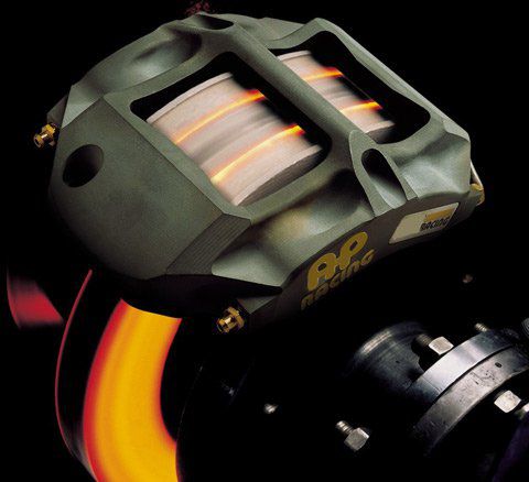 Кстати, на всех фотографиях раскаленных докрасна тормозов светится только сам диск, а не колодки и тем более не суппорт: