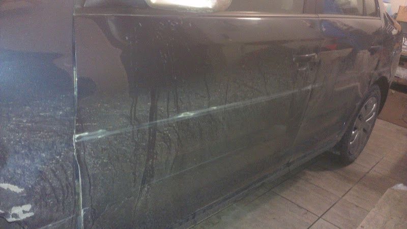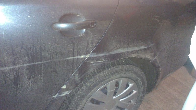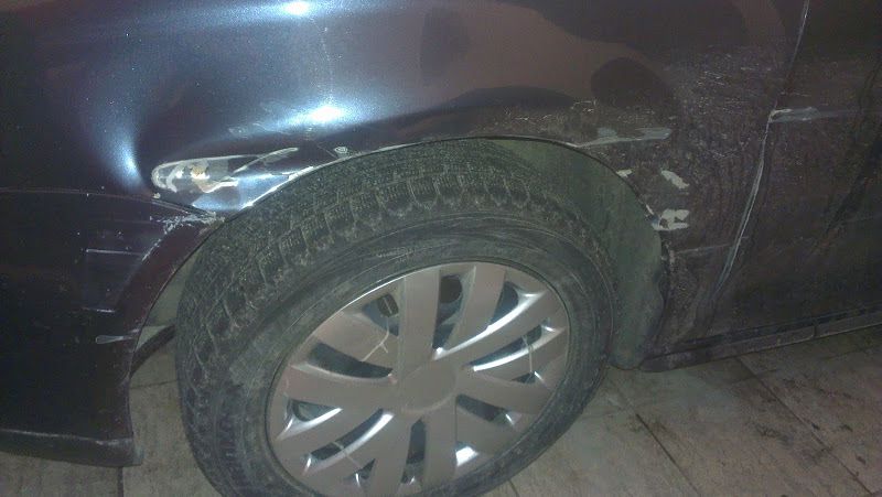 По кузову - притерлись к отбойнику левой бочиной - переднее крыло и дверь под замену, задняя дверь и крыло - ремонтопригодны.
