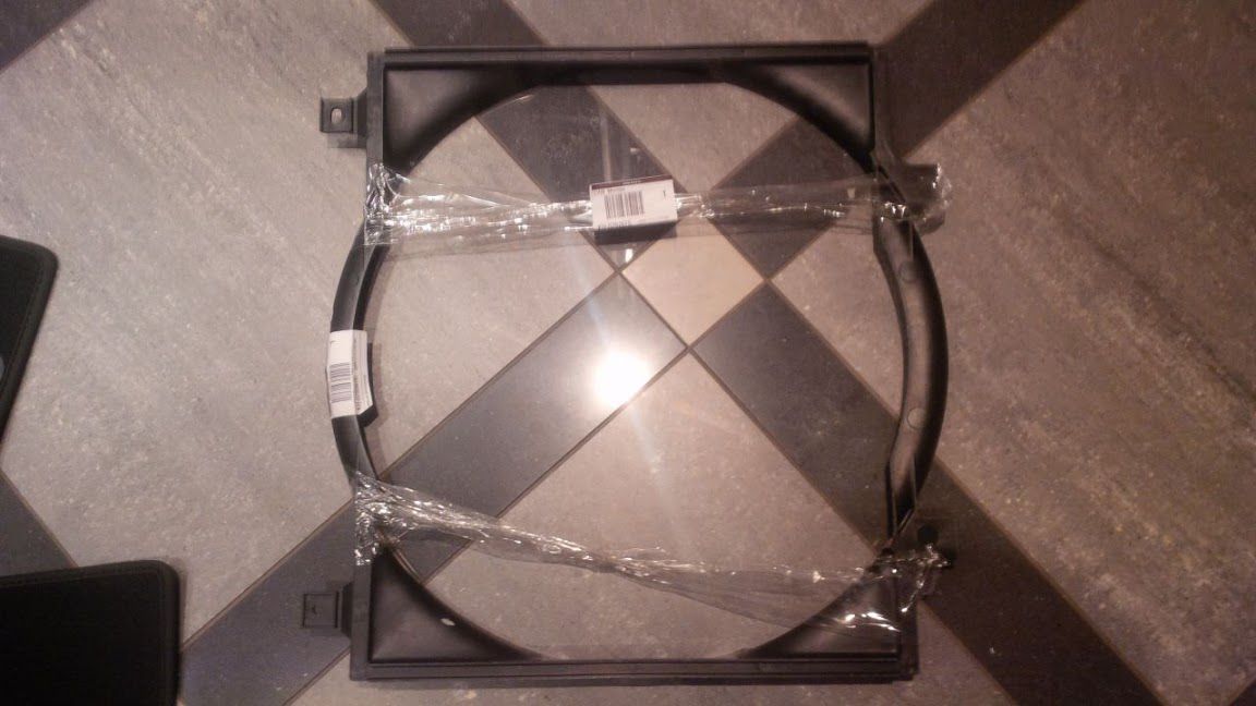 Новый диффузор радиатора. Родной был про... терян внуком хозяйки при замене ГРМ. Видимо, решили, что немецкие инженеры лохи и без него дует лучше ))