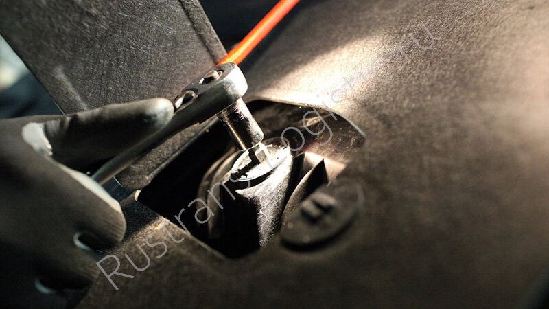 Важно убедиться, что автомобиль надежно закреплен.Найти сливное отверстие
