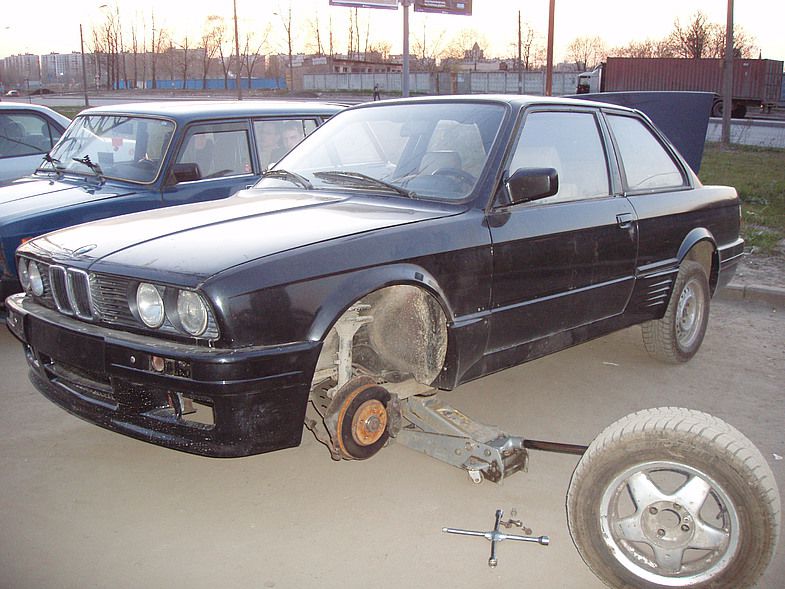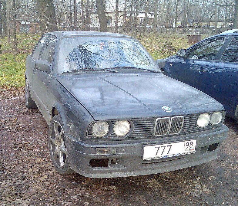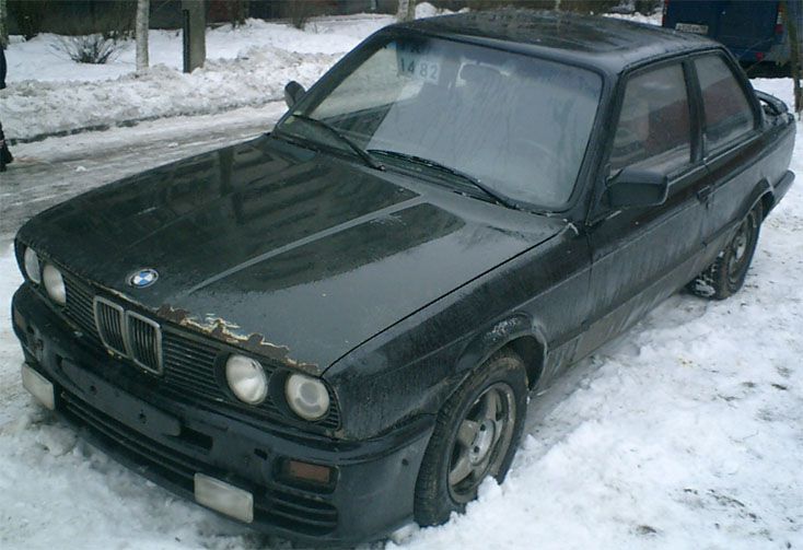 25 января 2005 года, мне досталась бмв 320... с убитым напрочь м20 (работало тока 4 цилиндра), с гнилым кузовом, с нерабочими тормозами... и прочими радостями.... битая в морду чутка. без нормального обвеса... на 14-х Тазовских дисках... в общем нормально работала там тока электро-регулировка зеркал