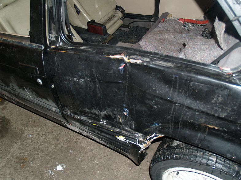 помято левое крыло от двери и до фонаря, разломан сам фонарь, выбита боковая форточка, РАЗЪЕБАН в хлам поддон, оторван маслозаборник. досталось так же рулевой рейке, тащили за нее.