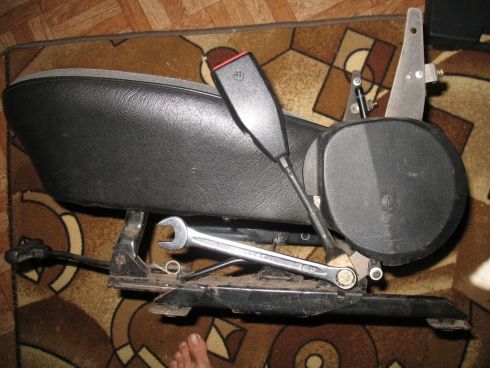 - Вынимаем сидушку из машины - 2 гайки спереди и 2 болта сзади, ключ на 17
