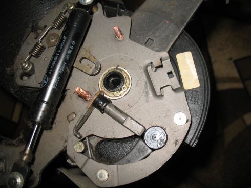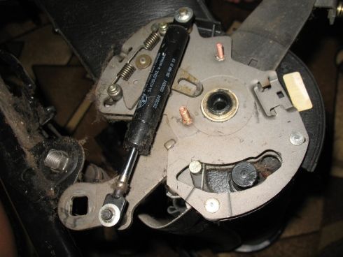5 Тянем механизм на себя. Повторяем для другой стороны. Вуаля, получаем сидушку, доступную для дальнейшей разборки