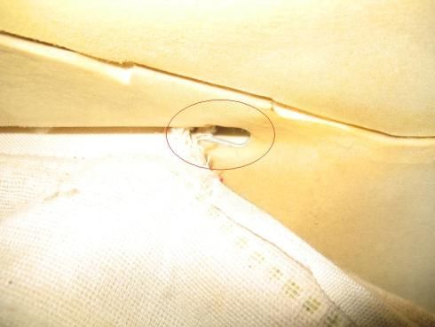 - разгибаем утконосами ушко спицы со стороны спинки(на фото обведено красным овалом) и вынимаем ее