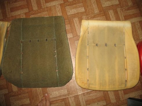 при необходимости переворачиваем и отделяем поролоновую часть от обивки. Для этого: