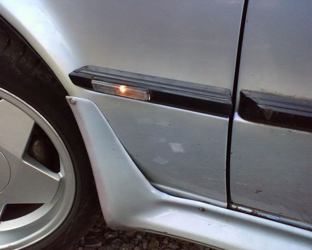 Повторители поворотов на крылья Е30 от Е38Началось все с того, что мне досталась машина вот с такими катафотами на краю молдинга задней двери: