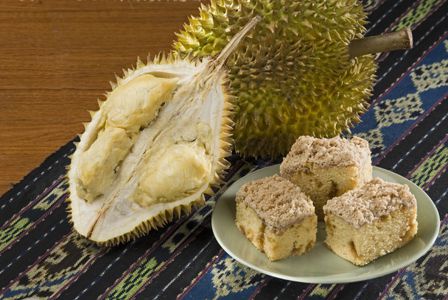 Плоды дуриана достигают в диаметре до 20 см и массы до 4 кг. Они имеют очень твёрдую оболочку и покрыты мощными колючками, защищающими содержимое недозрелого плода от животных. Раскрывается плод пятью створками, по краю которых расположены тёмные семена с мясистыми придатками — ариллусами.