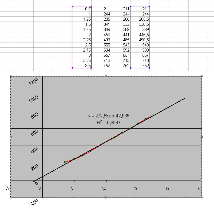 далее получае линейное (его достаточно впалне) уровненее линии тренда, и собстна ето уровнение ставим для вычисления показаний на индикаторе.