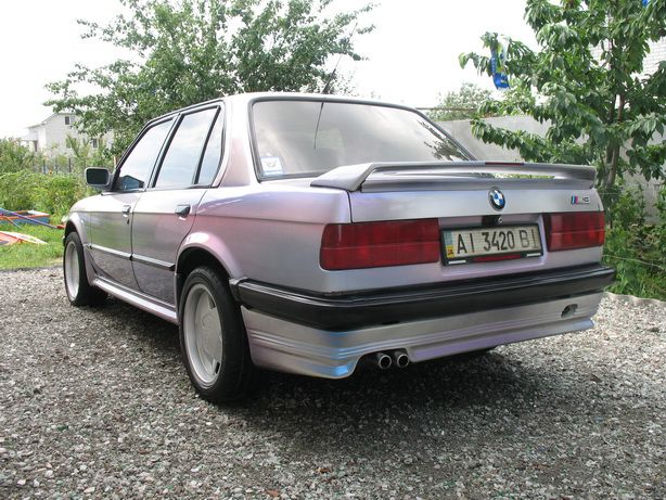 Экстерьер. Прикольный цвет (даже несколько цветов). Обвес оригинал BBS, стоковый спойлер + антикрыло Brayton со «стопом», ресницы. Красная задняя оптика (особенно левая), передняя оптика линзованная с китайскими белыми диодными лампочками габаритов, оригинальные ПТФ (правая светит в качестве габаритного огня), дымчатые стекла поворотов (скоро будут), дымчатые повторители Е38 в молдингах, отсутствует подсветка номера. Шедоу-лайн, черные бампера, тонировка (разной степени). Шильдик ///М3 на багажнике. Декоративная китайская антенна на липучке на крыше.