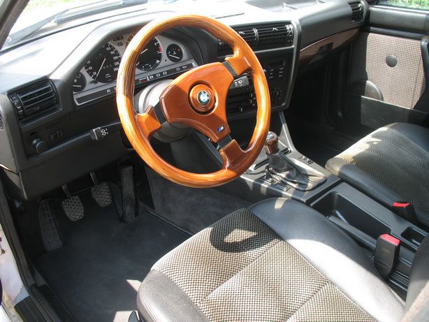 Интерьер. Салон в хорошем состоянии. Водительское сидение от Е36 (пассажирское Е30), задний диван с подголовниками, оригинальные резиновые коврики (Е34) + базарные ворсяные. Панорамное зеркало заднего вида, передняя подсветка салона hand made. Электо-люк/-стекла/-зеркала. Деревяный руль маленького диаметра (красивый но скользкий), оригинальная деревянная накладка бардачка и ручка КПП. Электронные часы с градусником, приборка с тахометром, экслюзивный показометр топлива под 2 бака. Сигнализация, ЦЗ, БСК. Все работает (как ни странно). Музыка: CD-магнитола, 6 динамиков, пищалки, саб, усилок, салонная антенна, китайский FM/mp3 плеер (который в прикуриватель втыкается).