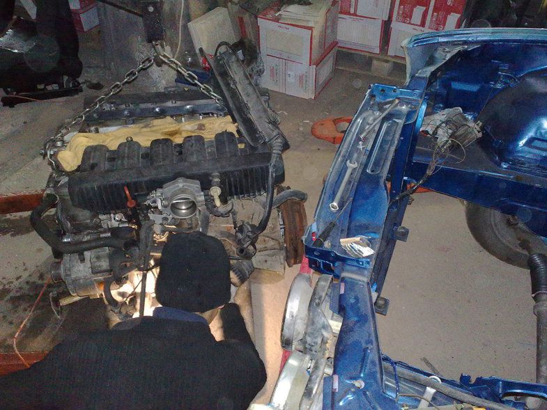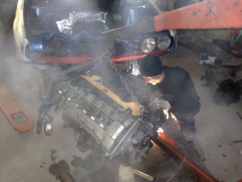 Настала очередь двигателя. Поскольку у меня был м50б20 в разобранном состоянии решено собирать его, м20б20 на мотронике был продан моему товарищу и главному помощнику на е21. Двигатель изъяли из кузова, который отправили к рихтовщикам на замену порогов, телевизора, латку нескольких дырок по днищу и главное восстановить оригинальный принцип открывания капота. Пока кузов находился у рихтовщиков мы откапиталили м20б20 и установили его в е21, купили все запчасти на м50б20 и практически собрали его ( практически- потому что решили поставить пенек в машину и потом накидывать голову на него).