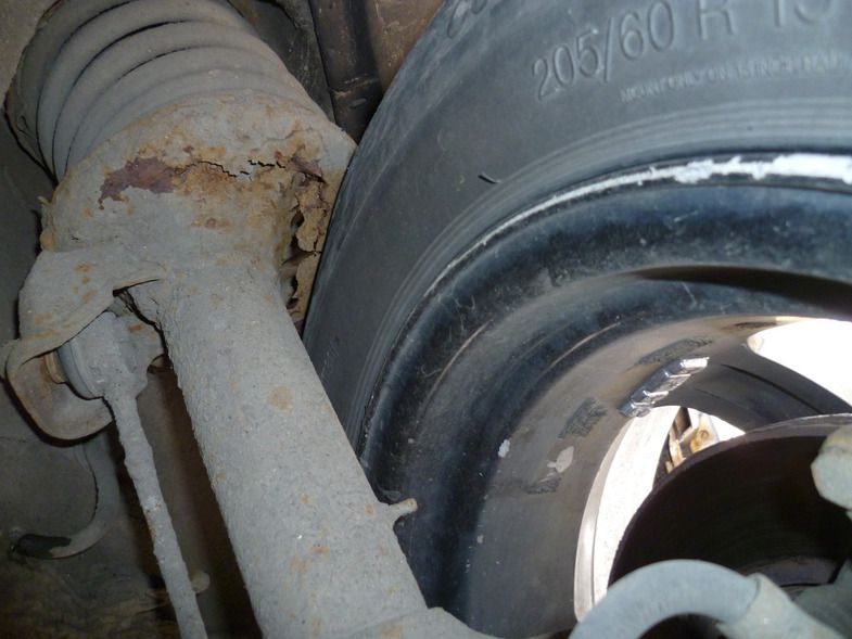 лопнула нижняя чашка которая пружину держит, и пружина с остатками этой чашки воогрузили немалый вес на резину образовав пятую канавку на ней слева