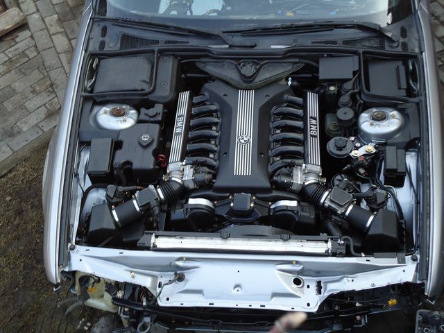 Так же на машинке установленна 5-ти ступенчатая коробка передач, дифференциал с блокировкой, кожанный электро-спорт-салон с памятью, электрошторка, чёрный потолок, оригинальный е34 ///М5 обвес, оригинальные диски e39 ///М5 и куча других прикольных штучек.
