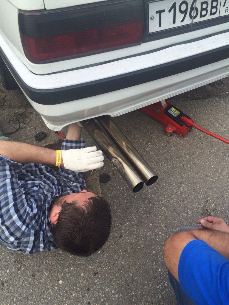 Так же во второй раз в этом сезоне перевариваю выхлоп )))) в начале сезона я вварил банку фирмы FortLuft, и как было видно по фото в предыдущем посту, длина выхлопа, торчащая из бампера, получилась неебически длинной ))))