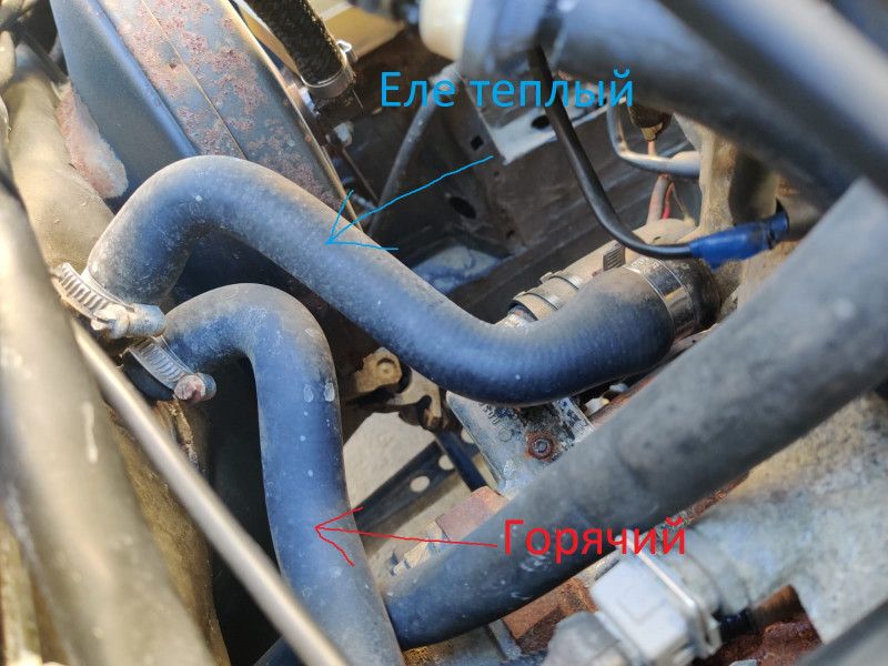 И самое интересное , патрубок от головки к печке горячий , патрубок от печки к коллектору еле теплый ....