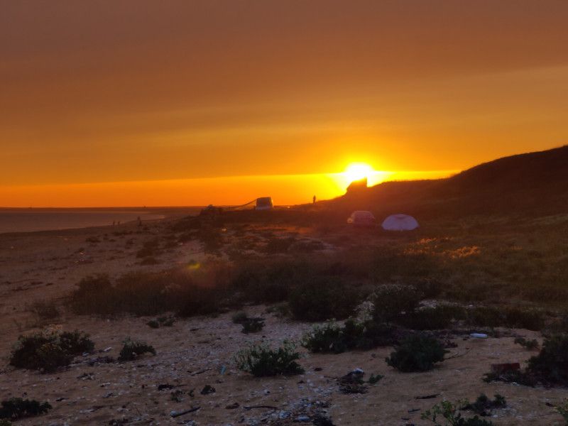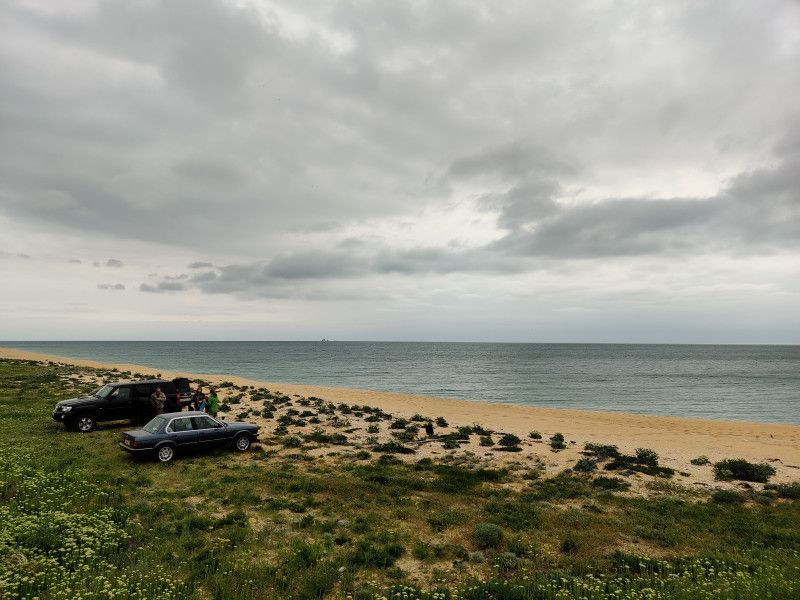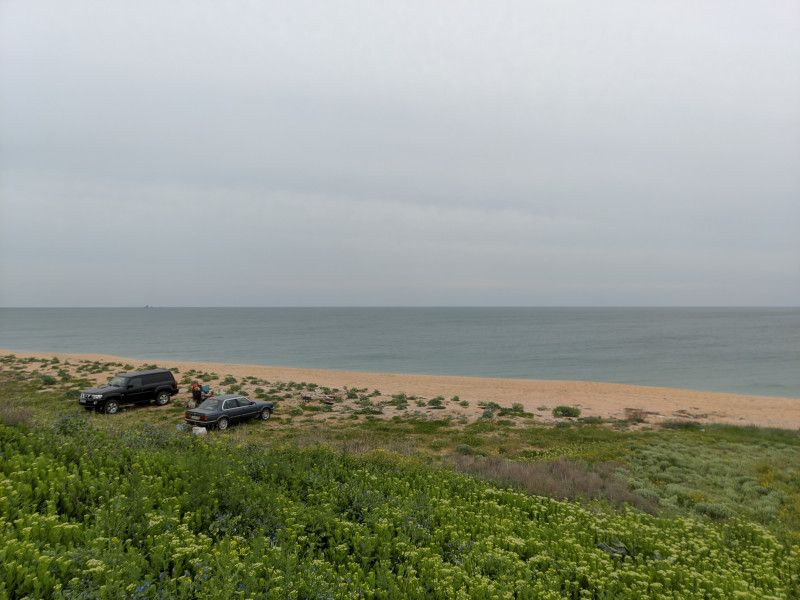 Первый день ночевали в Опукском заповеднике , погода была так себе , море холодное , никто не купался .